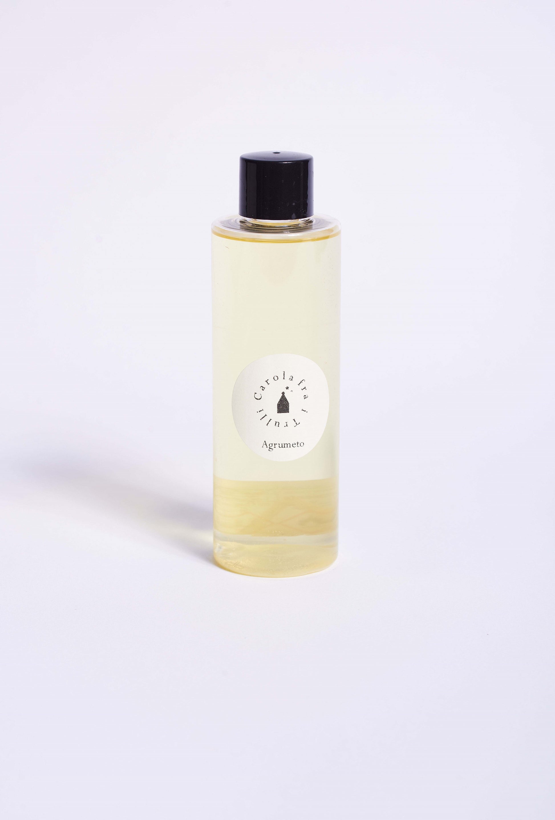 "Agrumeto" evokes the olfactory tale of a summer walk in a magical and ancient place, with high white walls, sheltered from the wind and in full sun, in the shade of luxuriant and green fronds.