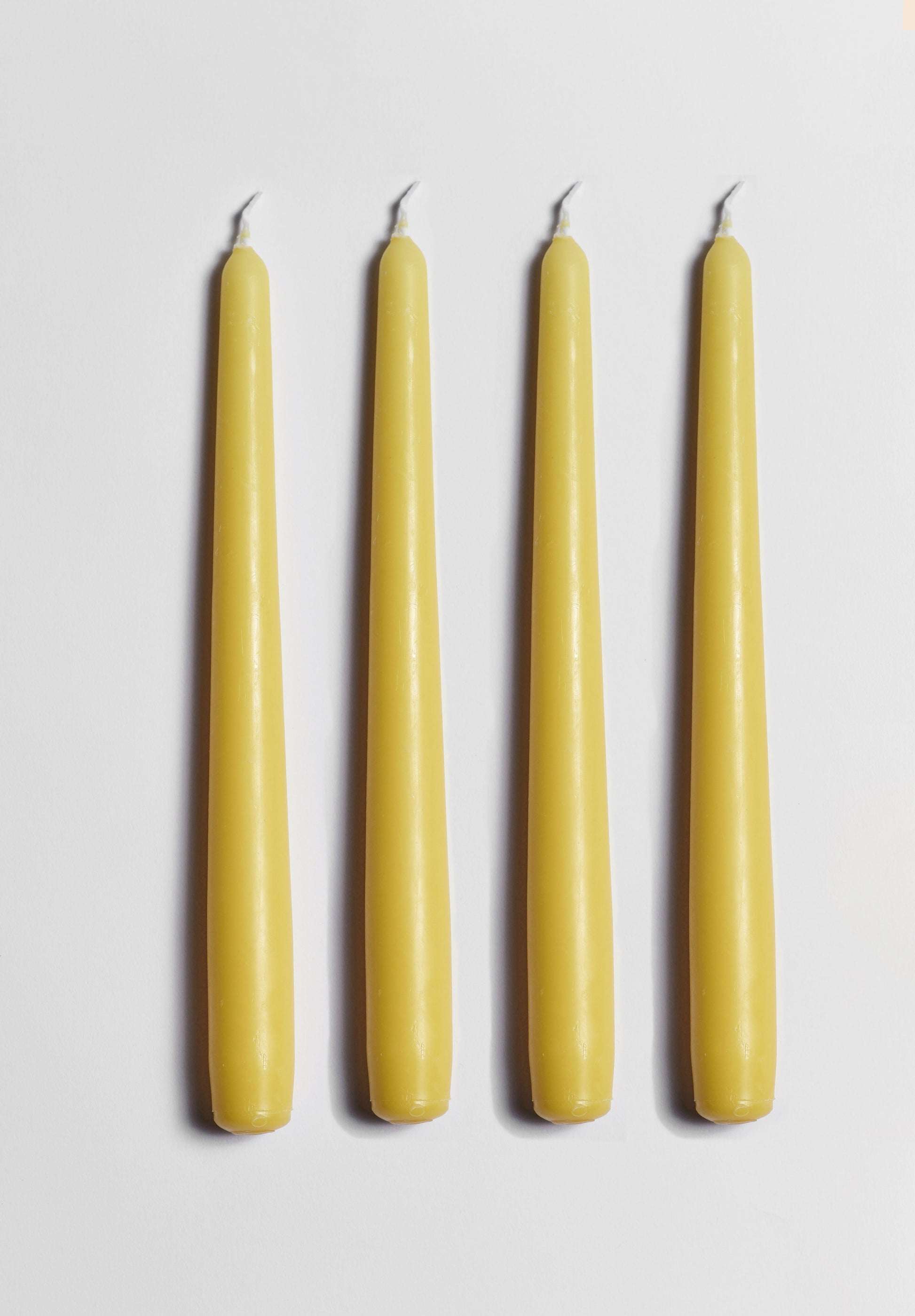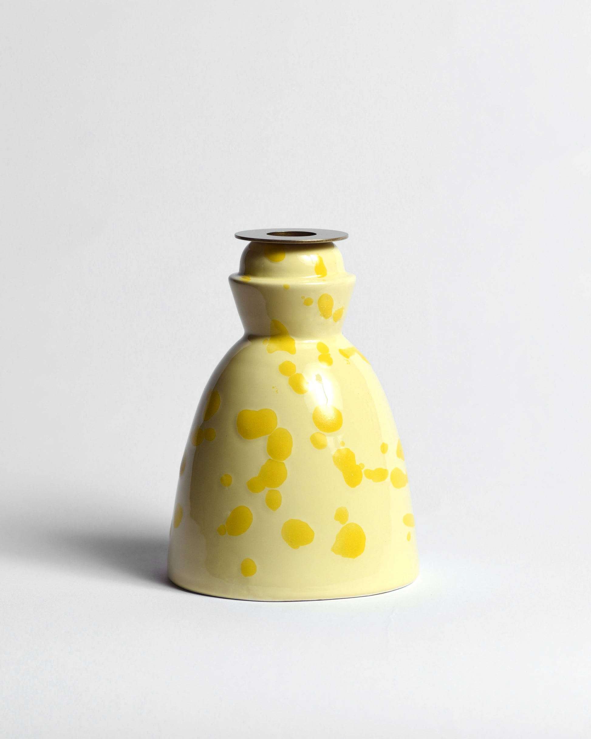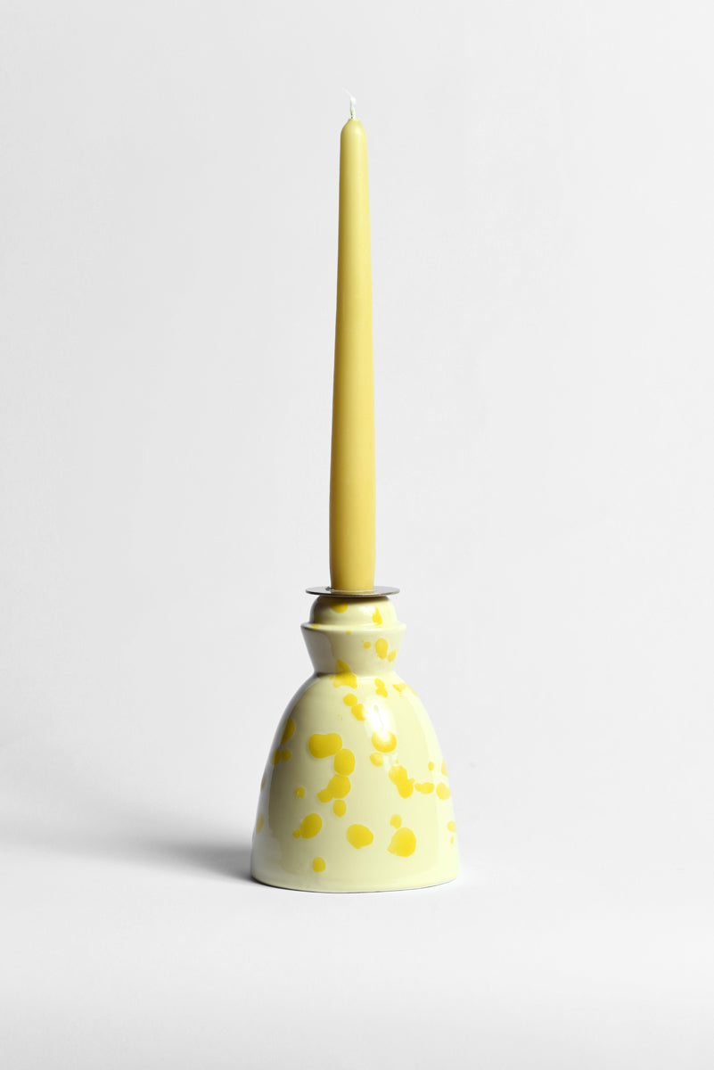 Cream and Yellow ceramic candlestick with a pack of 4 hand-dyed scented dinner candles