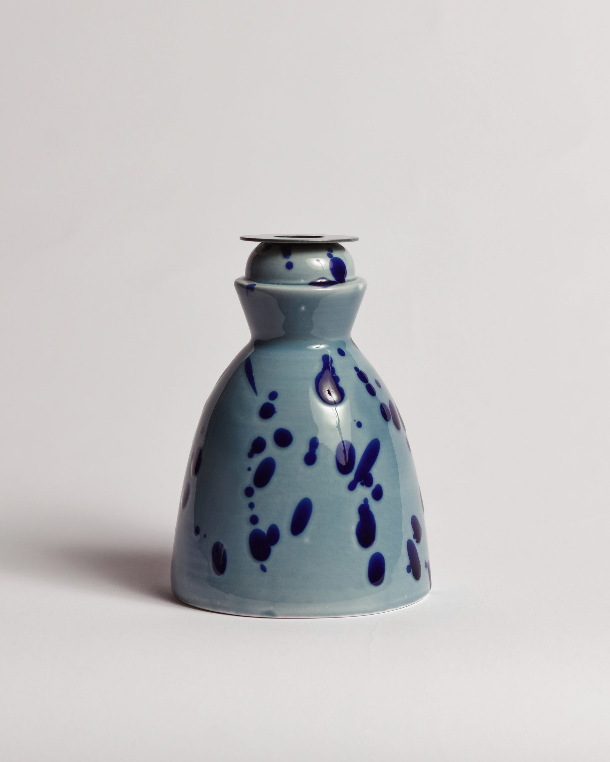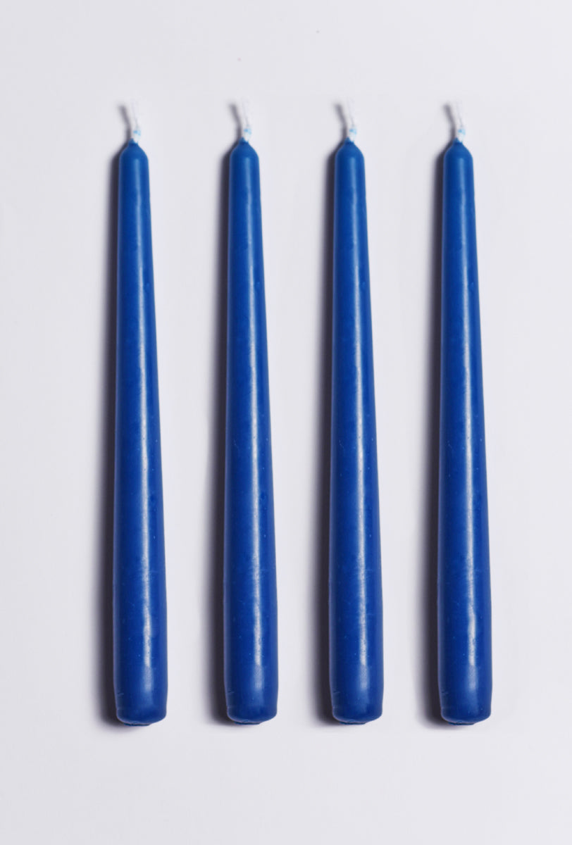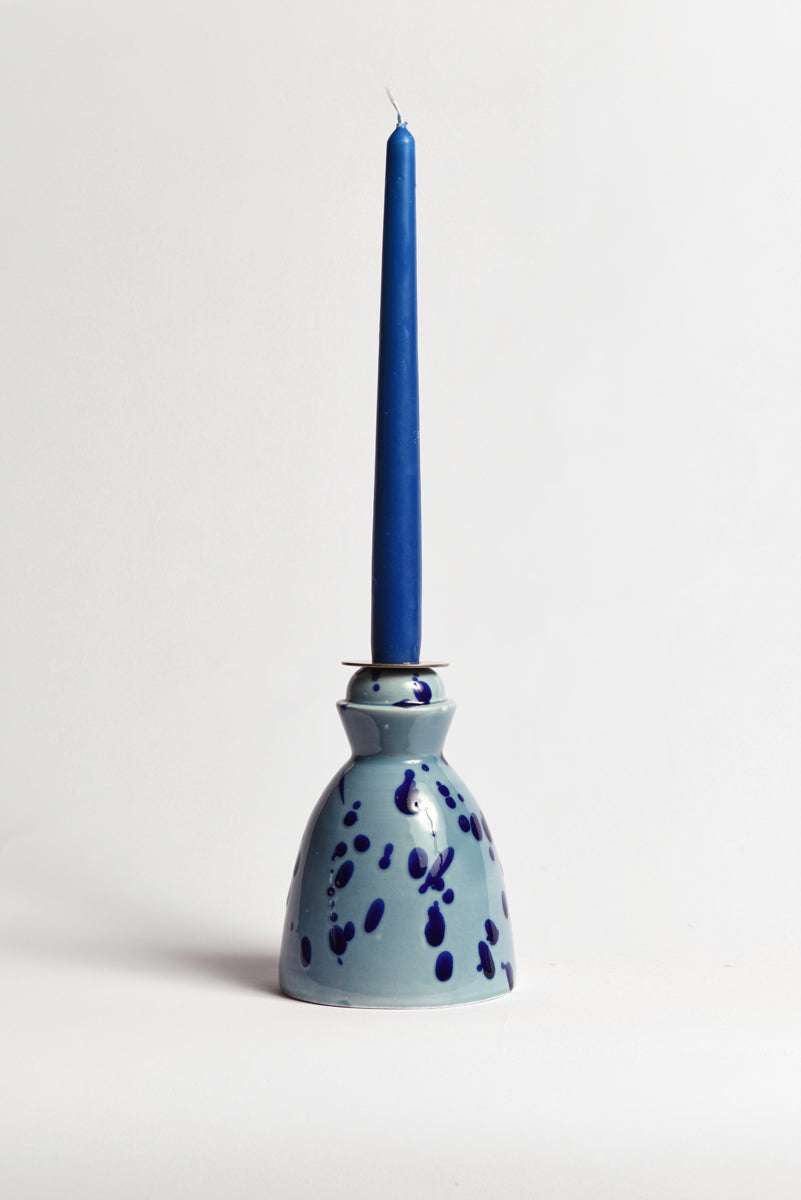 Celeste and Blue ceramic candlestick with a pack of 4 hand-dyed scented dinner candles