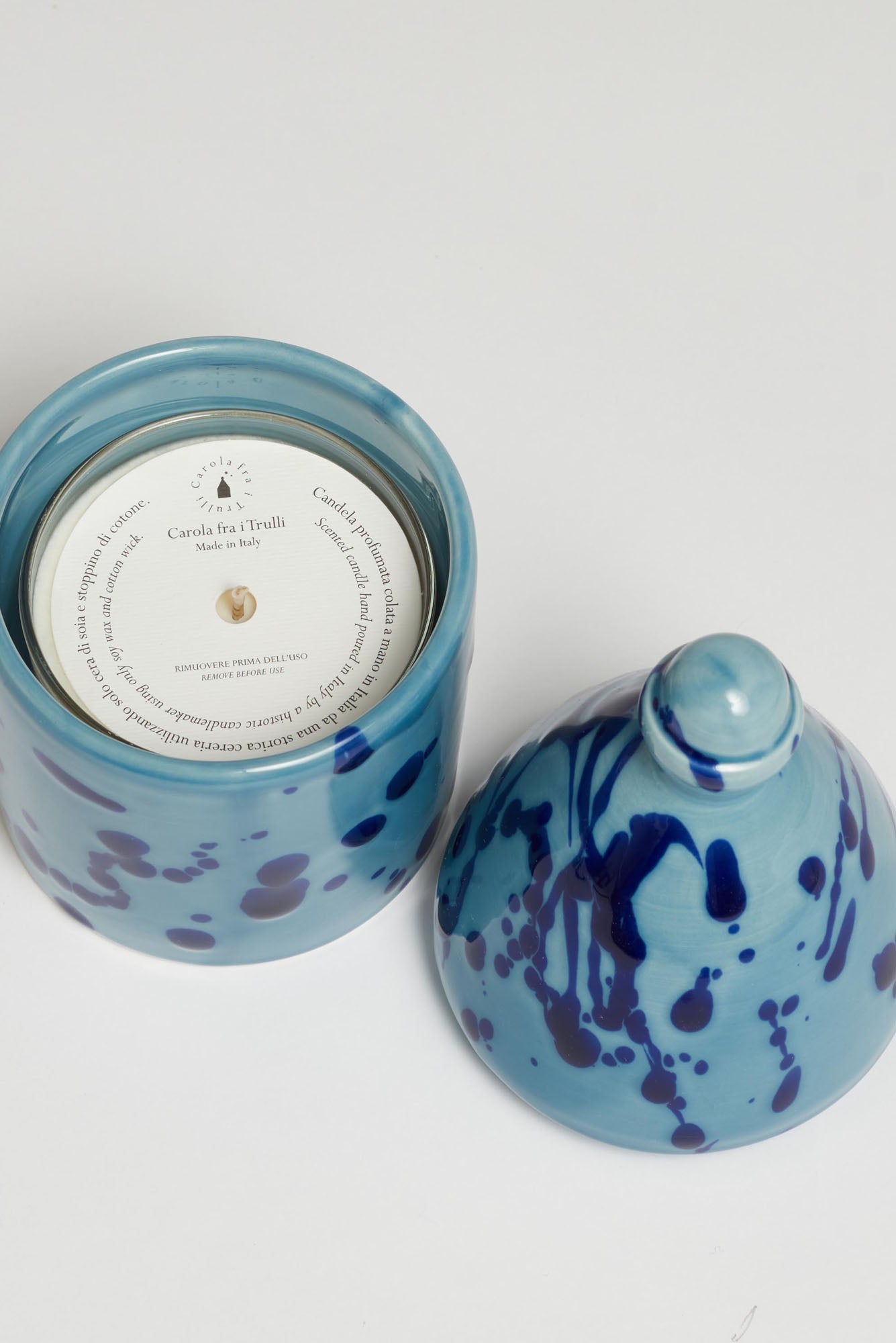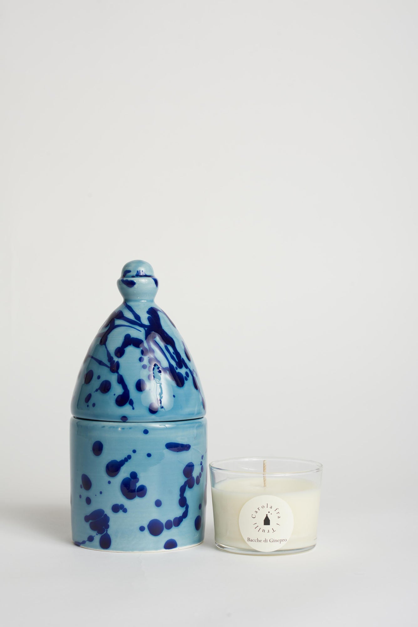 Celeste and Blue ceramic candle holder with a soy wax scented candle