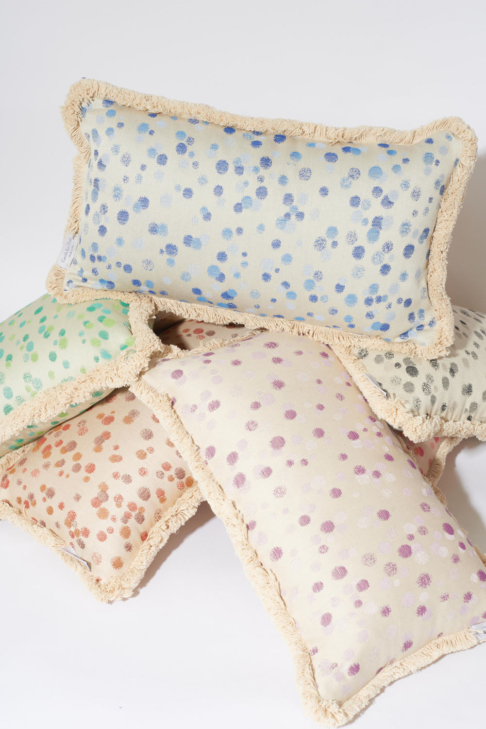 Decorative cushion in 100% cotton jacquard fabric with fringed edge