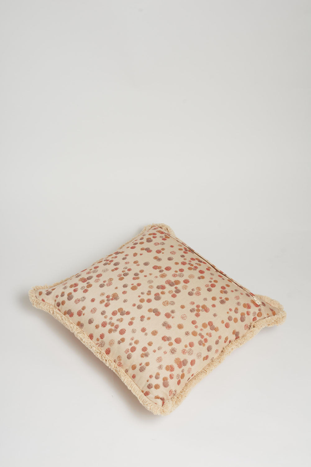 Decorative cushion in 100% cotton jacquard fabric with fringed edge