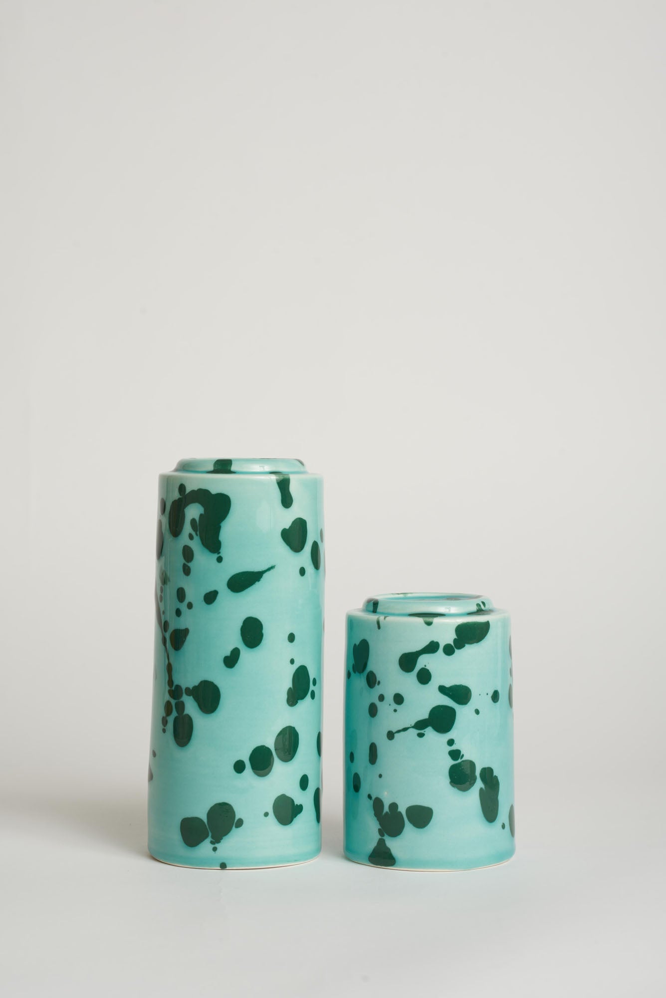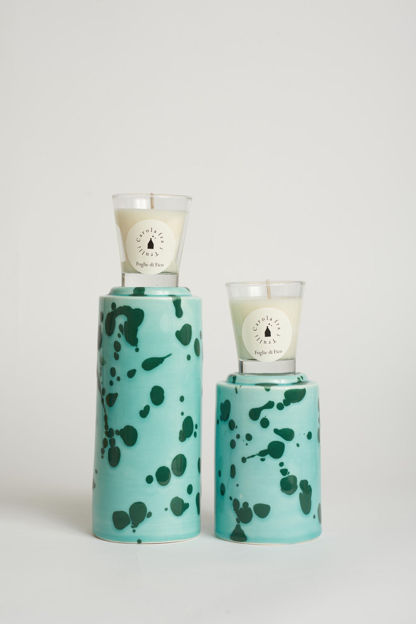 Pair of Aqua and Green ceramic candle holders with a pack of 4 soy wax scented candles