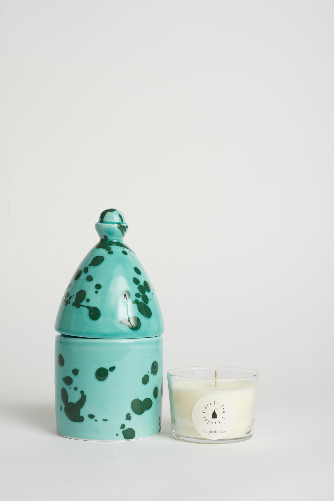 Aqua and Green ceramic candle holder with a soy wax scented candle