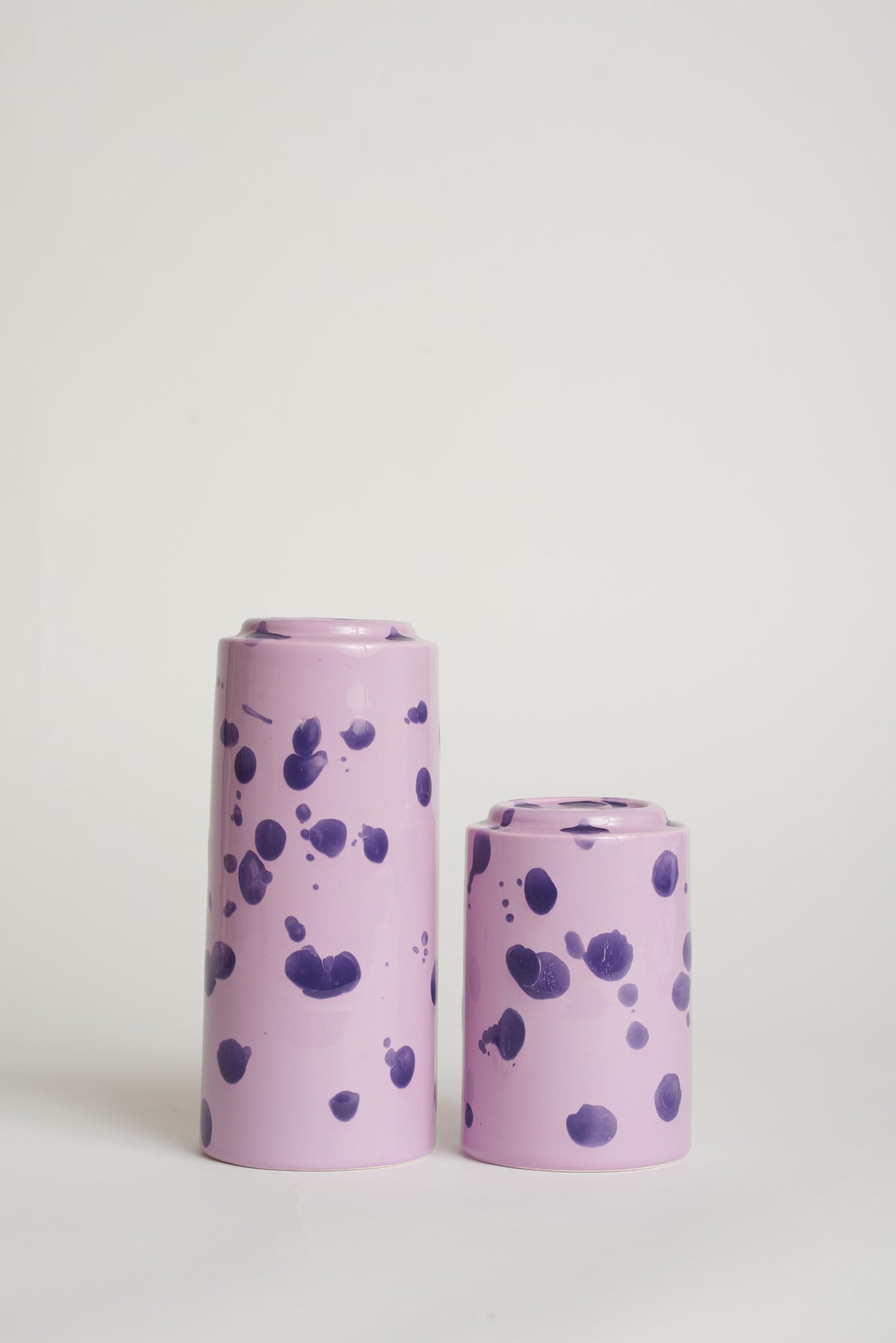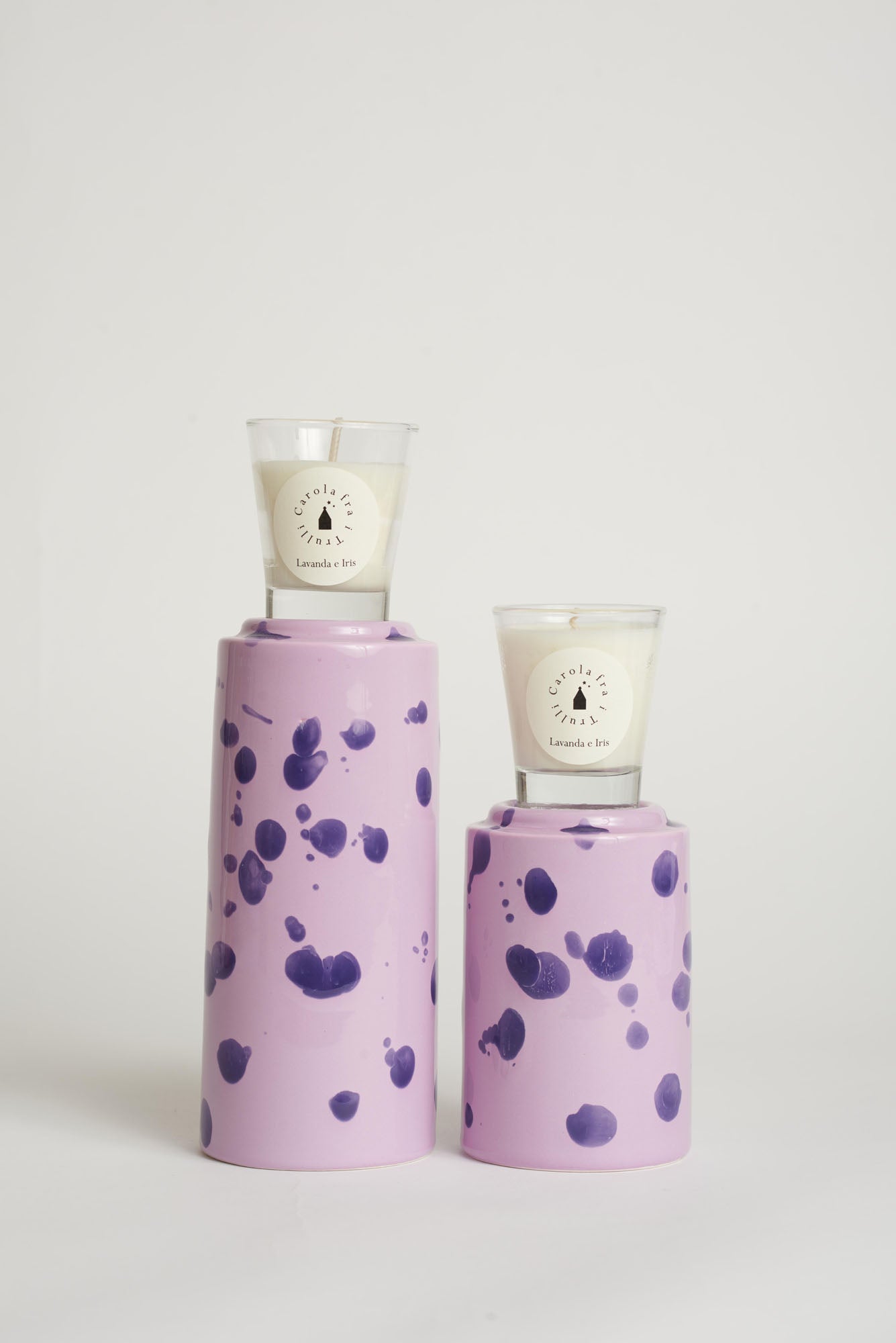 Pair of Lilac and Violet ceramic candle holders with a pack of 4 soy wax scented candles