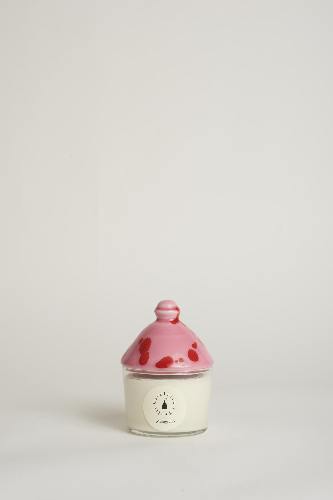 Soy wax scented candle with Fuchsia and Red ceramic lid