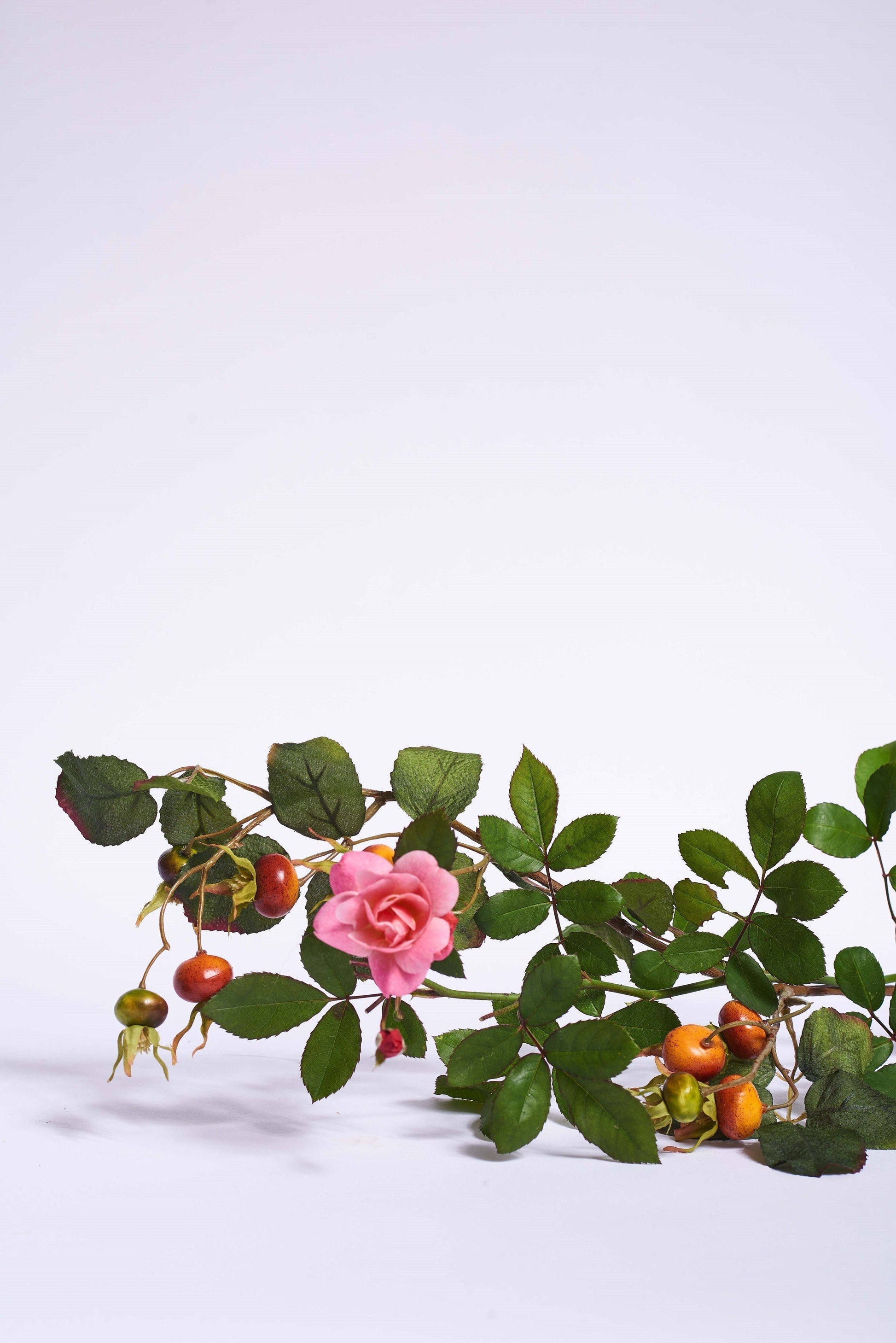 Conceived as an ode to wild rose which, with its gentle strength, climbs and thrives on dry stone walls, olive trees and arid myrtle bushes of the Mediterranean scrub.