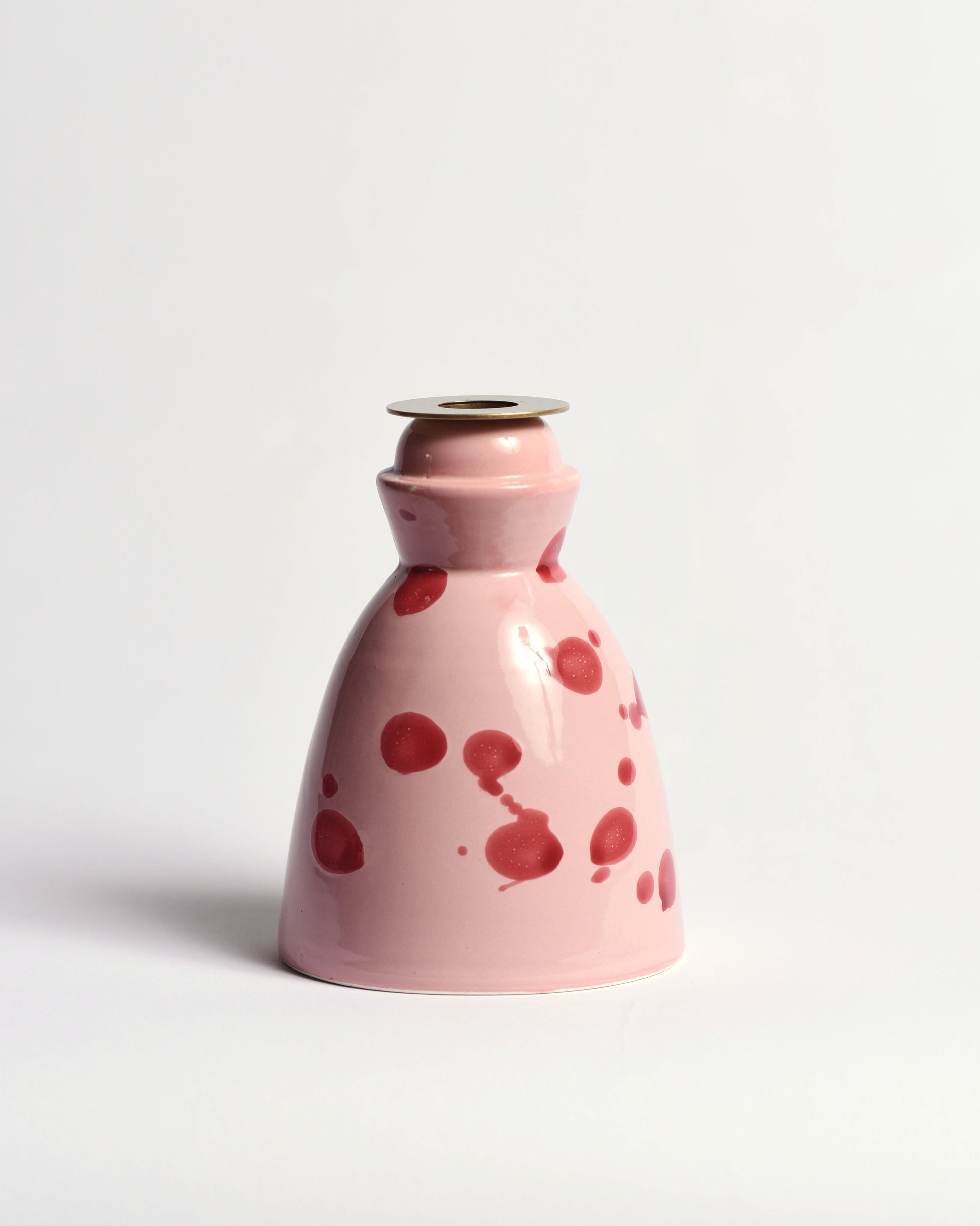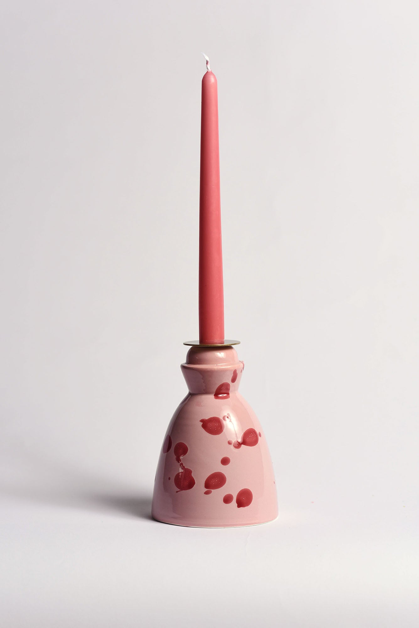 Rose and Burgundy ceramic candlestick with a pack of 4 hand-dyed scented dinner candles