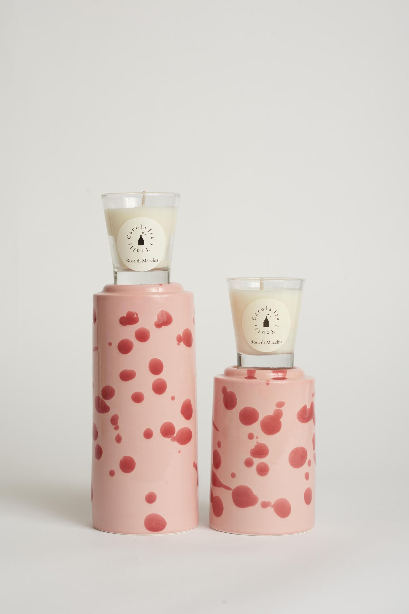 Pair of Rose and Burgundy ceramic candle holders with a pack of 4 soy wax scented candles