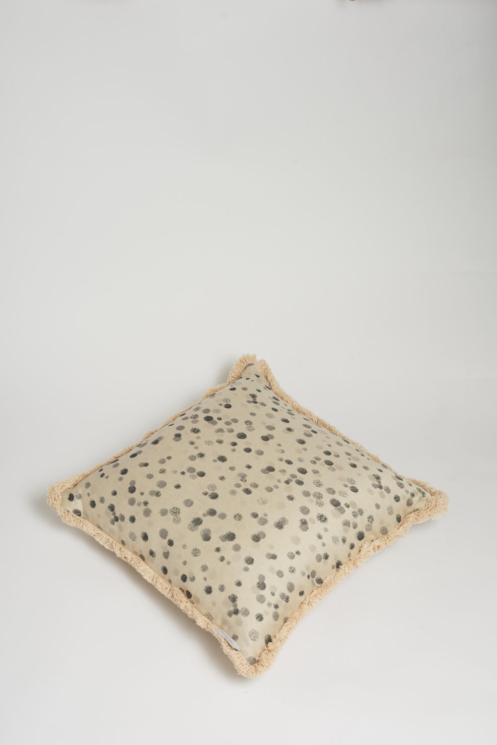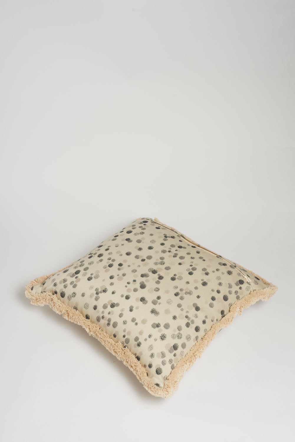 Decorative cushion in 100% cotton jacquard fabric with fringed edge